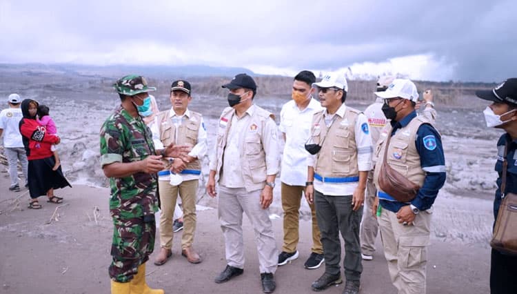 TIMES Solok/Ketua Dewan Penasehat Partai Gerindra DPD Jawa Timur, Bambang Haryo Soekartono bersama DPC Partai Gerindra Surabaya, Lumajang dan Malang saat meninjau dan menyerahkan bantuan Bencana Erupsi Gunung Semeru.Foto Partai Gerindra Jatim