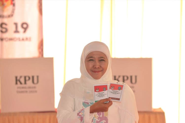 TIMES Solok/Calon Gubernur Jawa timur nomor urut dua Khofifah Indar Parawansa nyoblos menyalurkan hak suara di TPS 19 Kelurahan Jemur Wonosari Kecamatan Wonocolo, Kota Surabaya (FOTO: dok KIP)